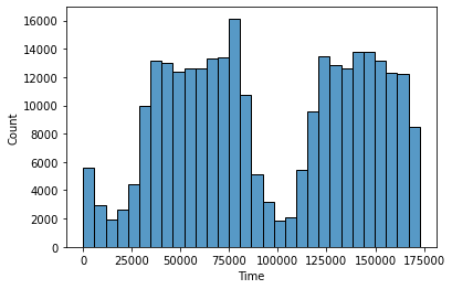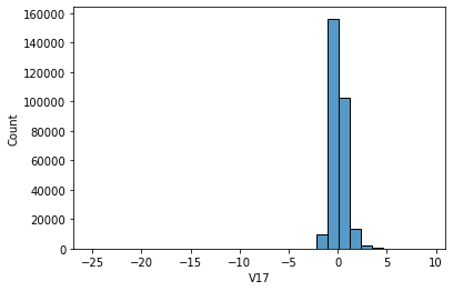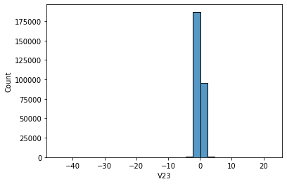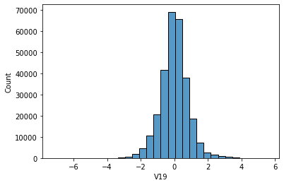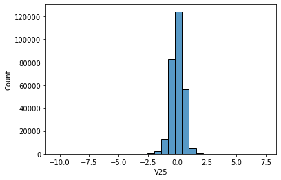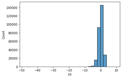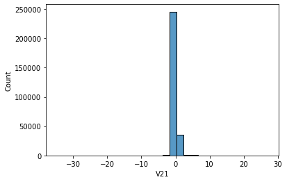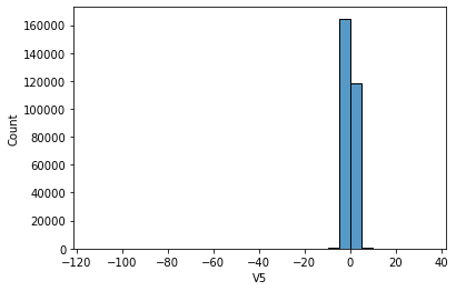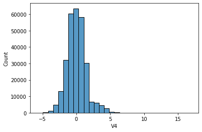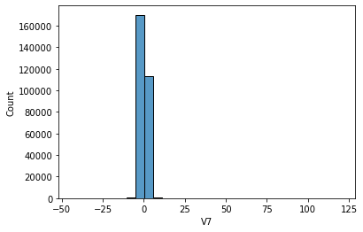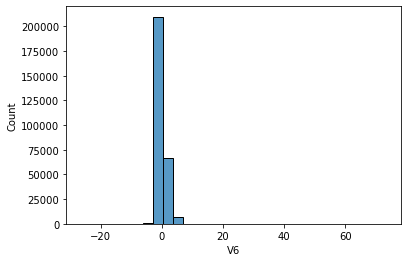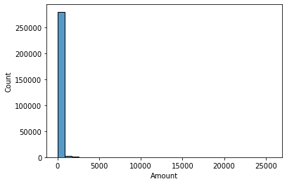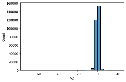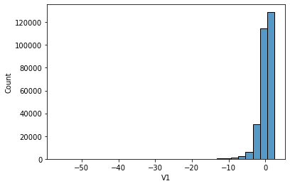 Features V1, V2, … V28 are the principal components obtained with PCA, the only features which have not been transformed with PCA are 'Time' and 'Amount'. Feature 'Time' contains the seconds elapsed between each transaction and the first transaction in the dataset. The feature 'Amount' is the transaction Amount, this feature can be used for example- dependent cost-sensitive learning. Feature 'Class' is the response variable and it takes value 1 in case of fraud and 0 otherwise.