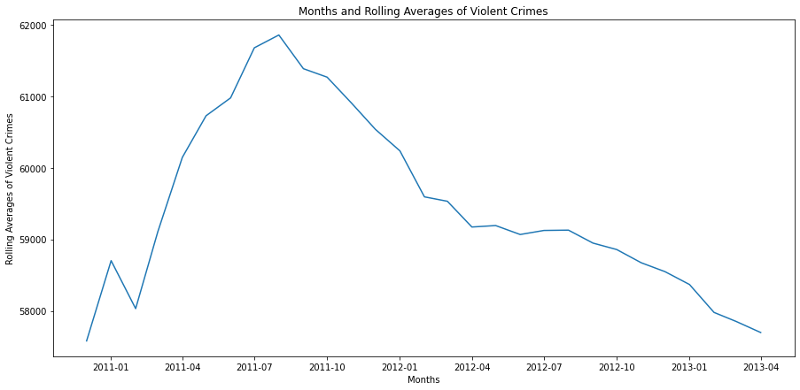 Using appropriate techniques, determine whether Violent Crimes are increasing, decreasing, or are stable.